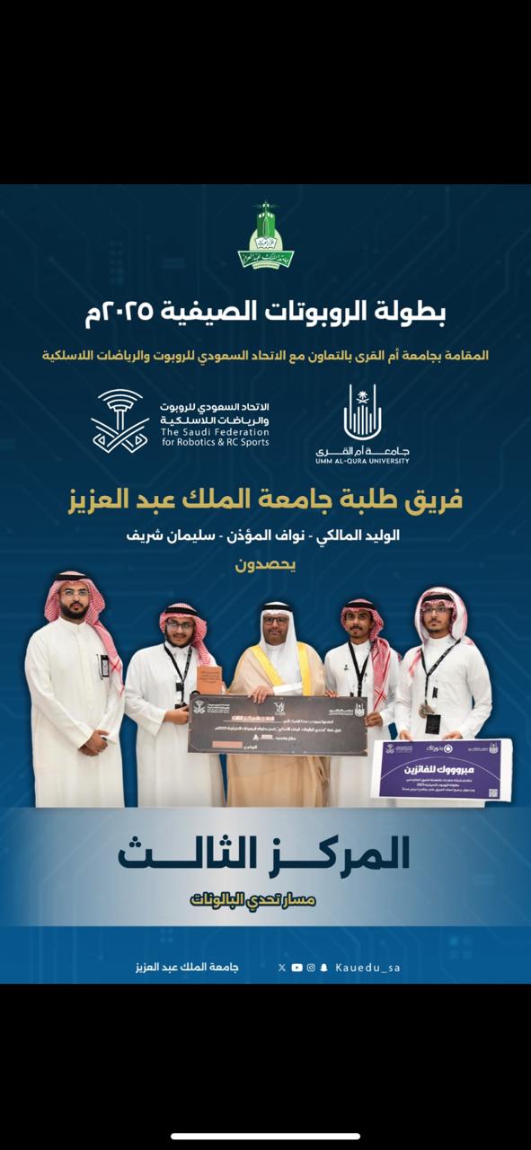 The King Abdulaziz University student team earns third place in the 2025 Summer Robotics Championship — Balloon Challenge track.